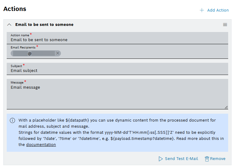 - Send Test E-Mail button sends the actual E-Mail.