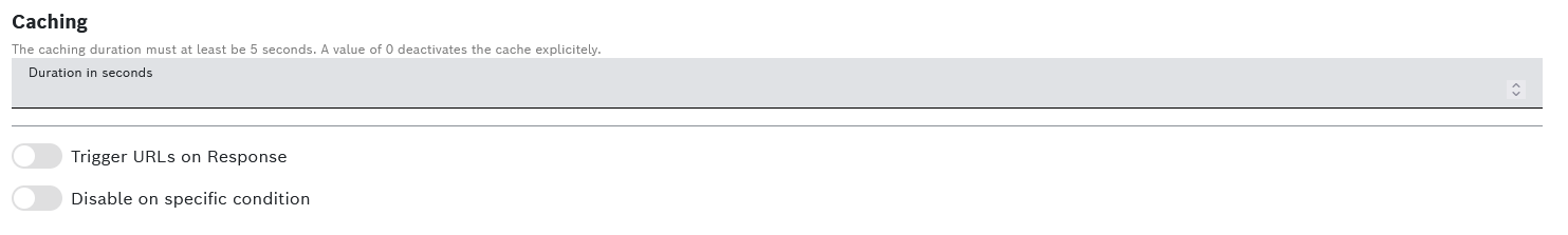 - In the Duration in seconds field under Caching, specify the caching duration in seconds.