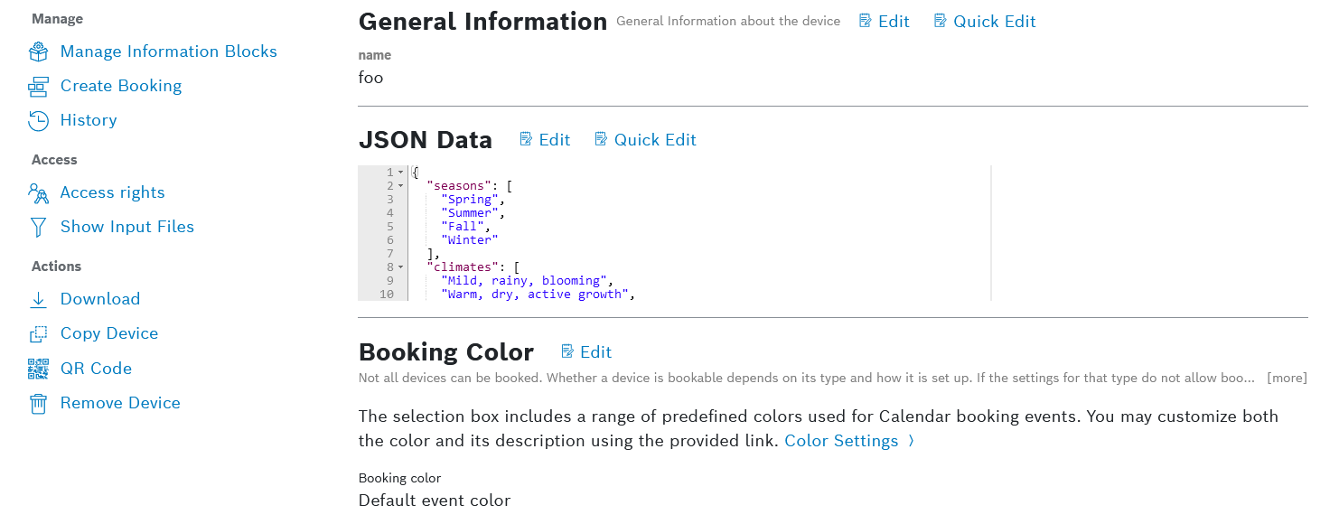 With the Booking Color information block, you can apply a consistent color to all bookings which involve this device.