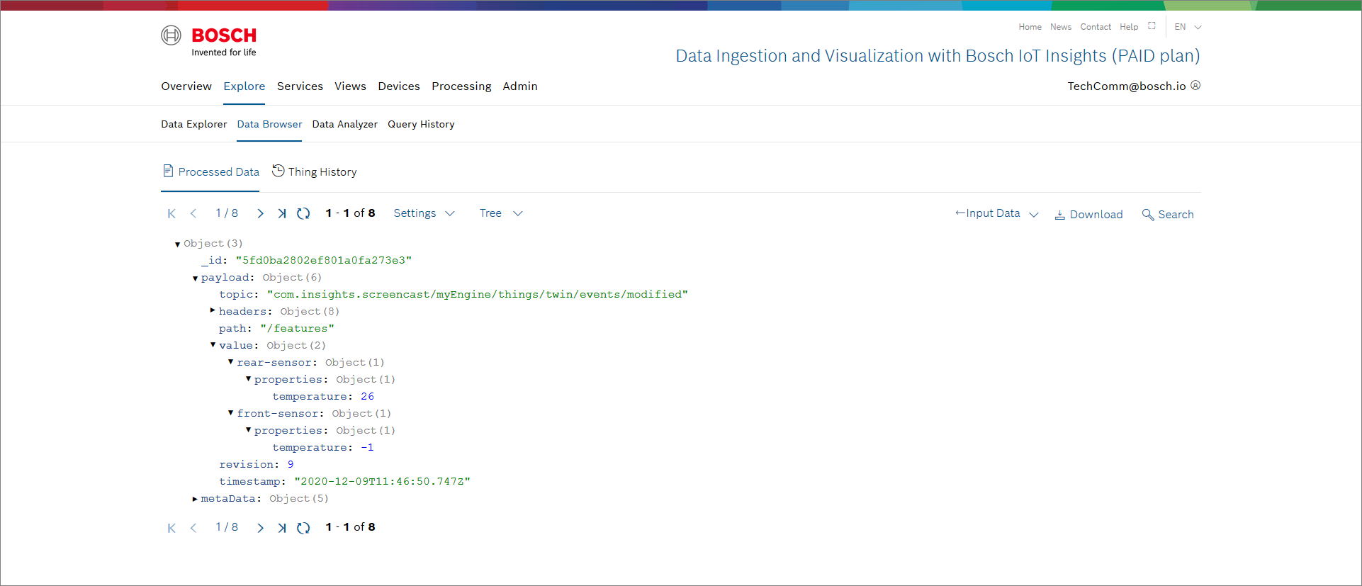 The next step is to check whether your Bosch IoT Insights project has received and processed the sent temperature values.