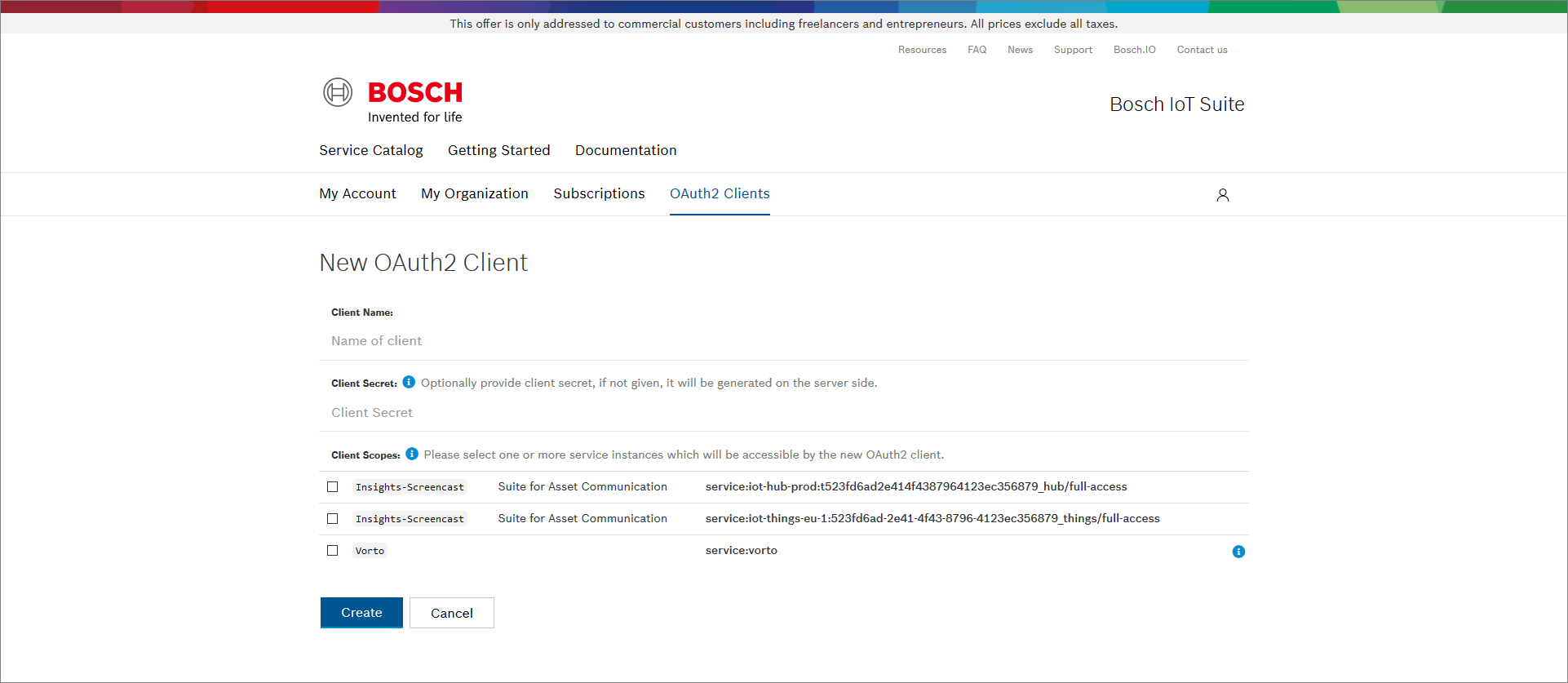 insights.The authorization subject is required to authorize the data transfer from the Device Management instance to Bosch IoT Insights.