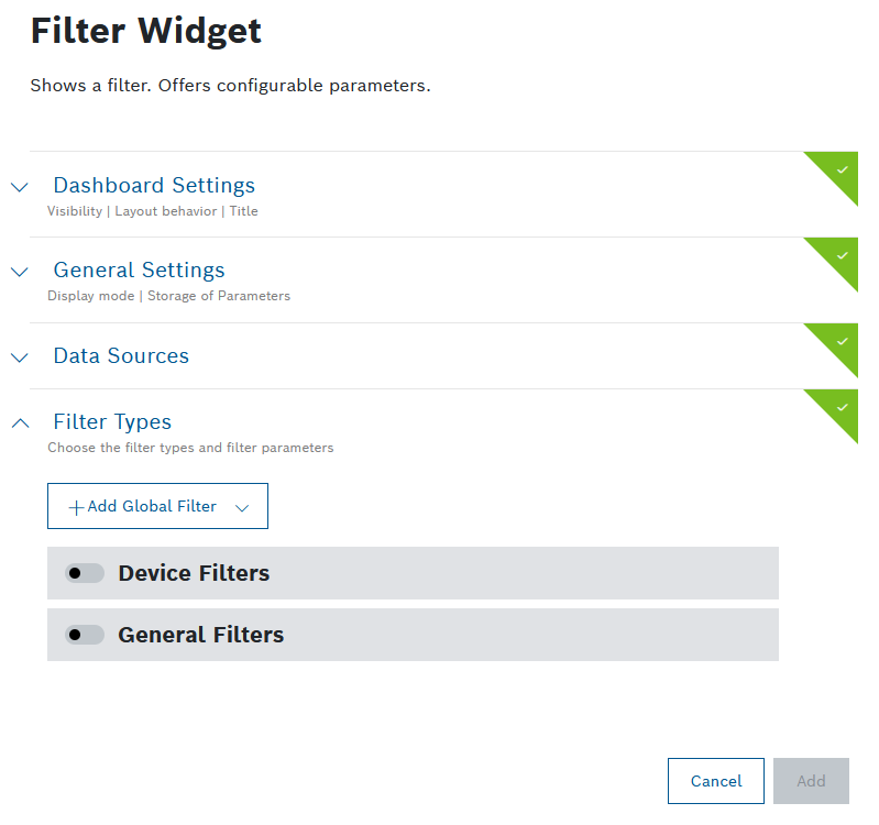 - Activate the Mark as Global Filter checkbox to make this filter parameter globally available for other dashboards.