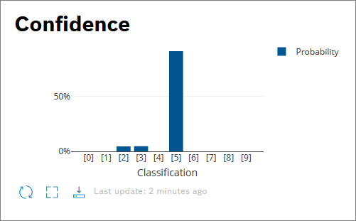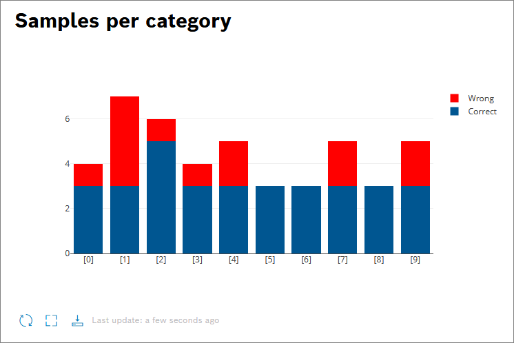 The next Bar chart widget shows how many digits have been either recognized correctly or wrong. This bar chart contains two bar charts that are displayed on top of each other.