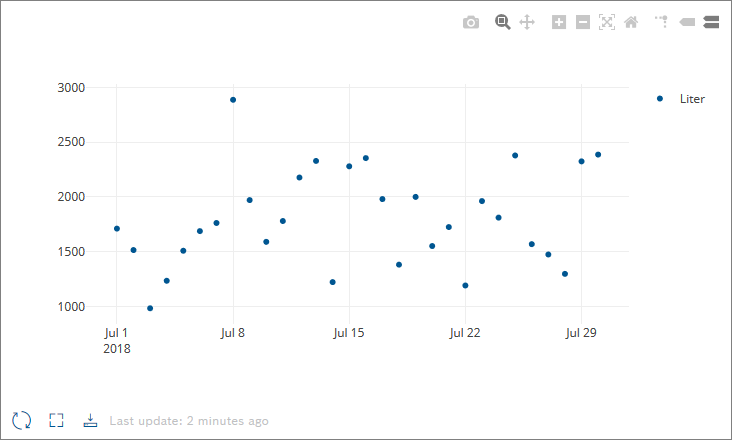 Using the Scatter Chart widget, data can be displayed as points or markers. A point is placed based on the coordinates for the x-axis and y-axis.