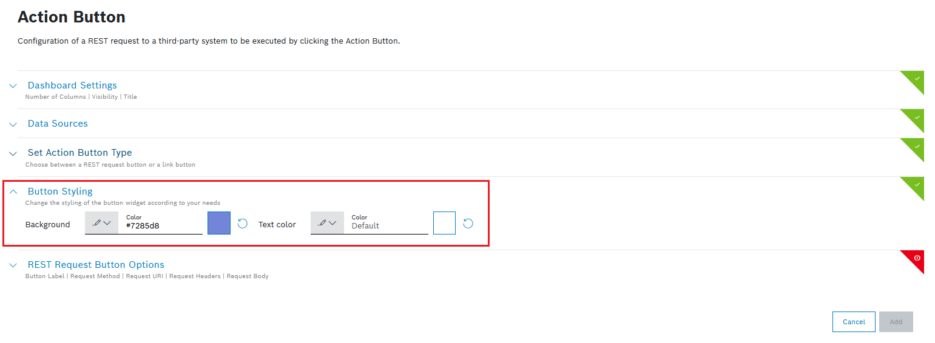- Conditional actions – Tables are compliant with the recent Bosch Brand Guide.