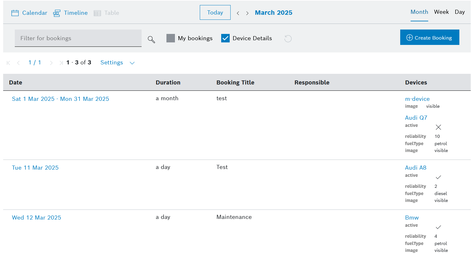 - Activate the Extended device details checkbox to display device properties in the calendar booking.