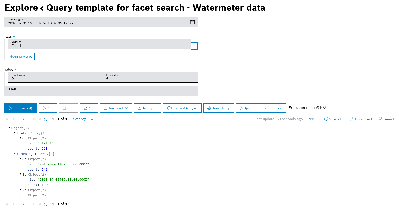- Add a Name which will help you recognize the template later on, for example Query template for facet search - Watermeter data.