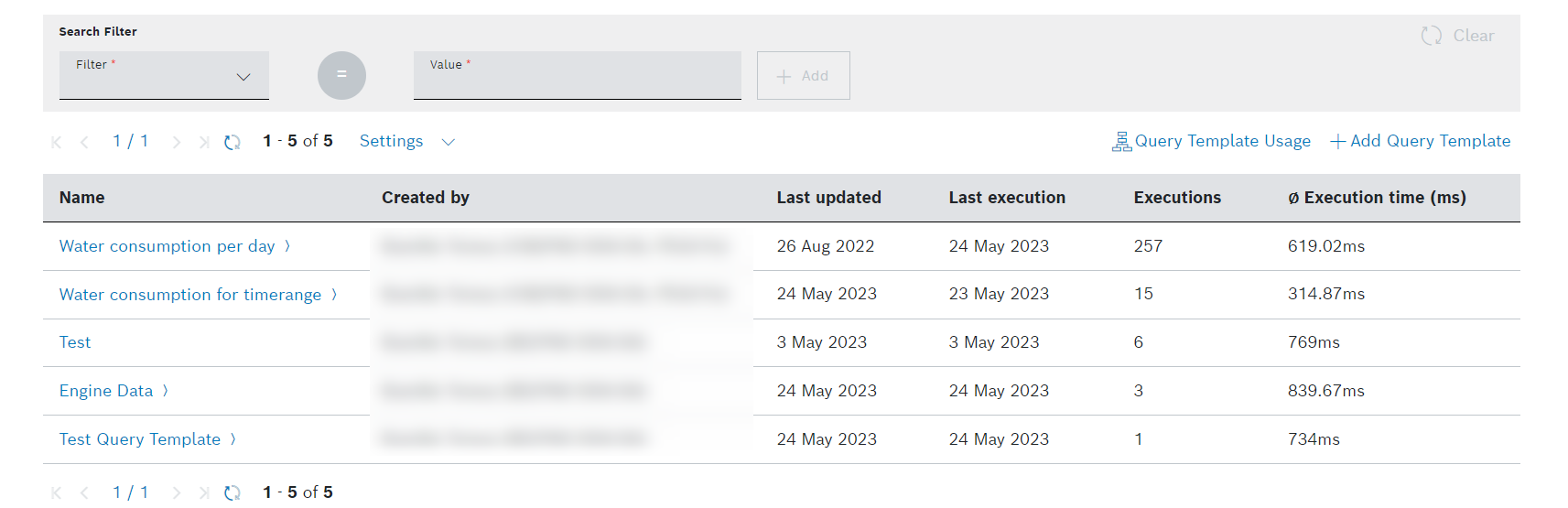 - Select the number of query templates to be displayed per page.