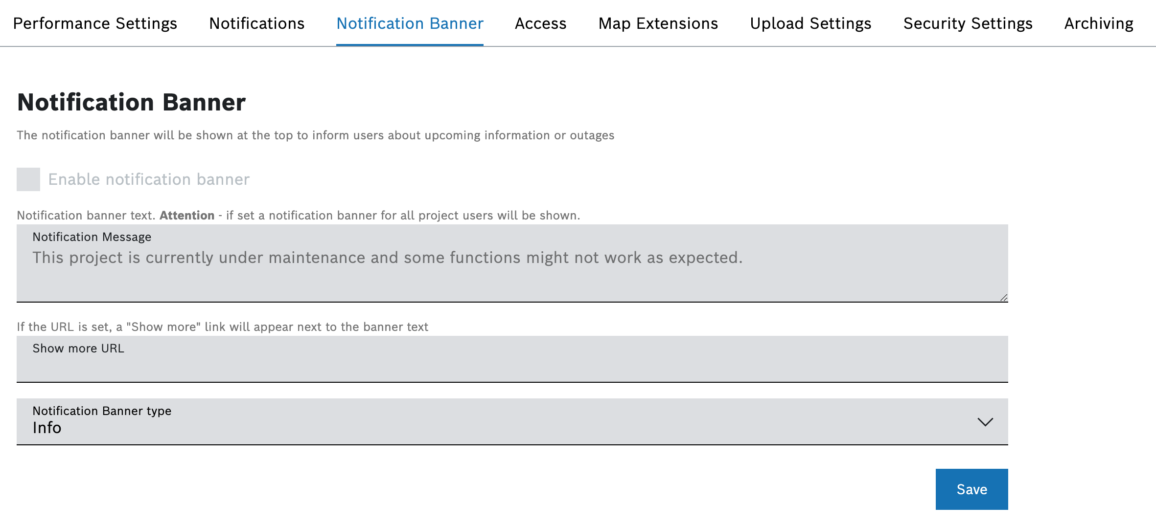 → The notification banner is displayed at the top throughout the project.To hide the notification banner, deactivate the Enable notification banner checkbox.