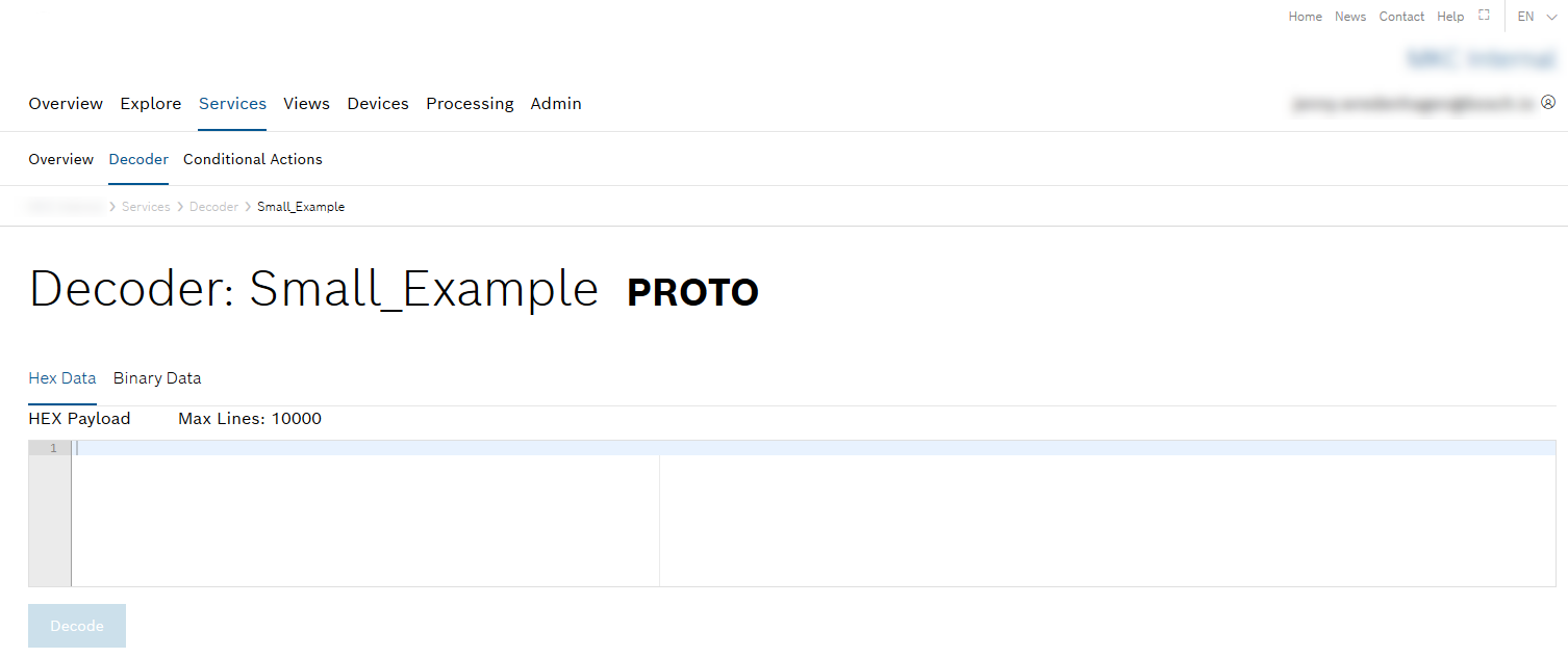 - Open the Hex Data tab and enter the hex data from which the variable values are decoded.