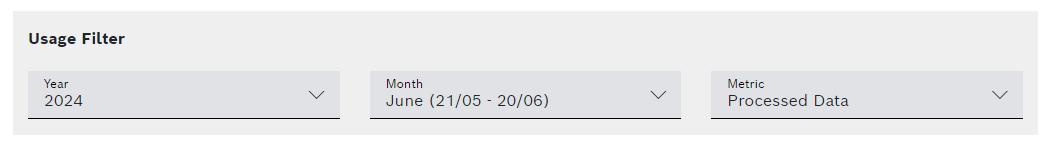 In the Usage Filter pane, select the filter criteria Year, Month and Metric. The values and the chart will be updated accordingly.